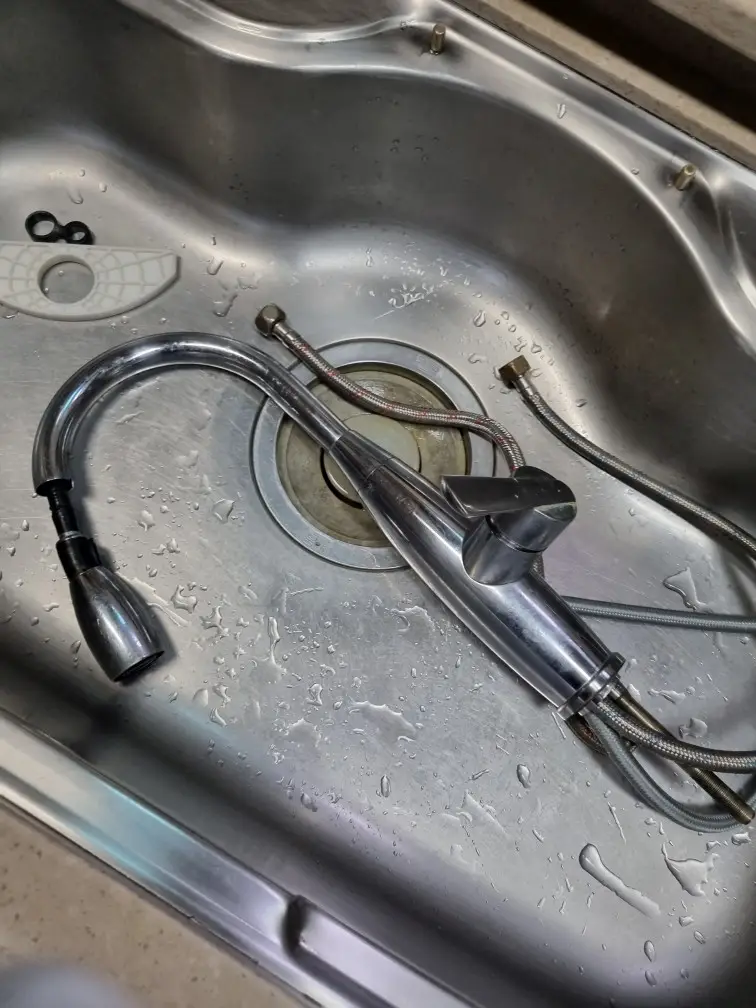 교체는 주방 단수 잠근 뒤, 수전 하부 고정 너트를 풀고 본체를 빼낸 다음, 새 수전을 구멍에 끼워 고정·연결하는 순서예요. 싱크대 하부 공간이 좁아서 손이 잘 안 들어가고, 연결부를 잘못 조이면 균열·누수가 나올 수 있어요. 호스·연결관 길이와 각도도 새 수전에 맞춰야 해서, 직접 하기보다는 수전·배관 시공을 자주 하는 쪽에 맡기는 편이 안전합니다.